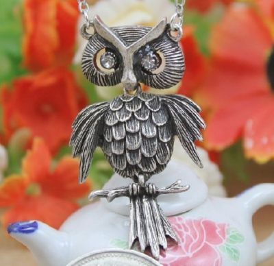 Title (ebay affiliate link): Antique Retro style silver owl necklace crystal eye.
