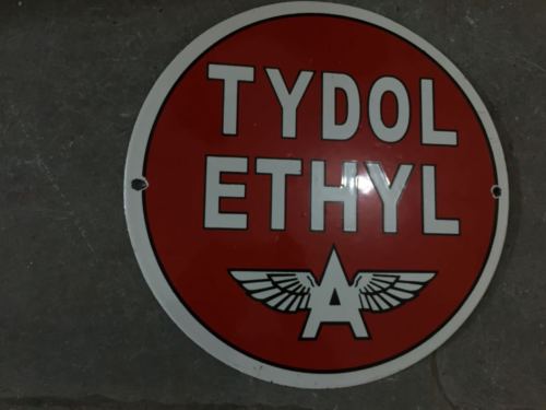 Porcelain Tydol Ethyl Enamel Sign Size 6" Inches Round