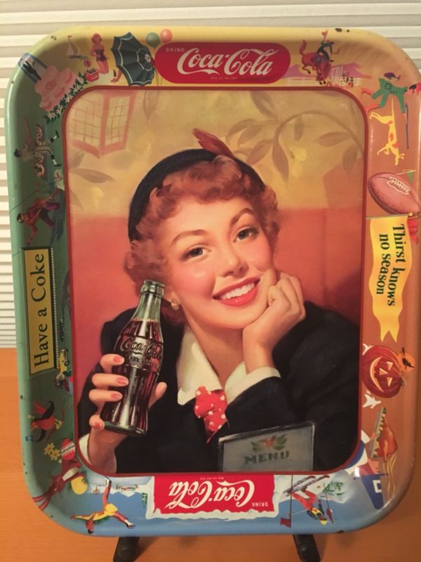 Title (ebay affiliate link): VINTAGE COCA COLA Tin Litho advertising serving tray Menu Girl 1953 10.5"X13"