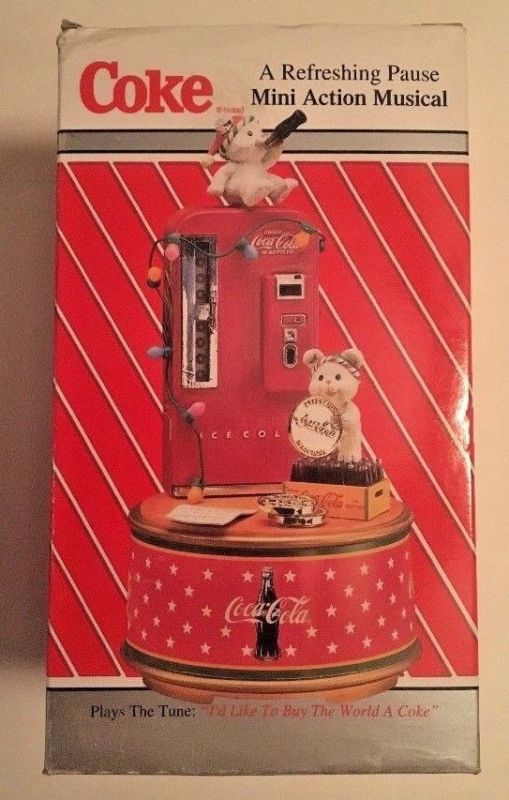 Title (ebay affiliate link): Enesco Coca-Cola A Refreshing Pause Mini Action Musical Buy the World a Coke