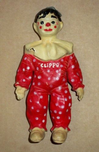 Title (ebay affiliate link): Vintage 7" Clippo the Clown Squeaky Rubber Doll Circus Toy 1936 Effanbee