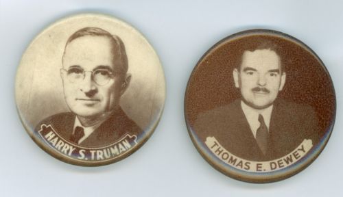 Title (ebay affiliate link): 2 Vintage 1948 President Harry Truman & Dewey Political Photo Pinback Buttons