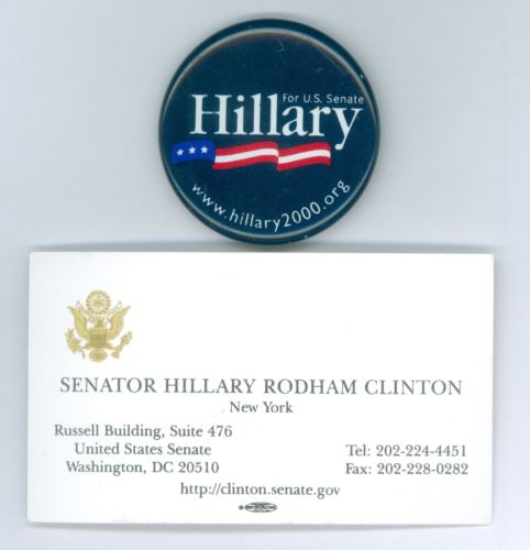 Title (ebay affiliate link): Vintage 2000 NY Senator Hillary Clinton Political Pinback Button & Business Card