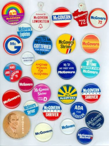 Title (ebay affiliate link): 26 Vintage 1972 Senator George McGovern Political Pinback Buttons &2 Tabs Wisc