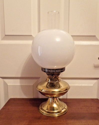 Title (ebay affiliate link): A vintage brass oil lamp with white shade Duplex twin burner working order