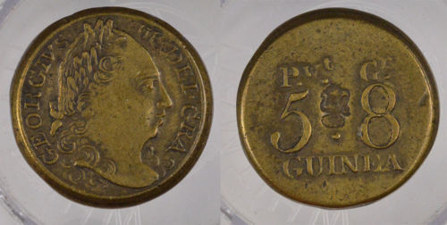 Title (ebay affiliate link): P.W.G.R. 5:8GUINEA W/ COUNTERSTAMP OF TEAPOT. OLD BRASS G.B. COIN GEORGIUS III