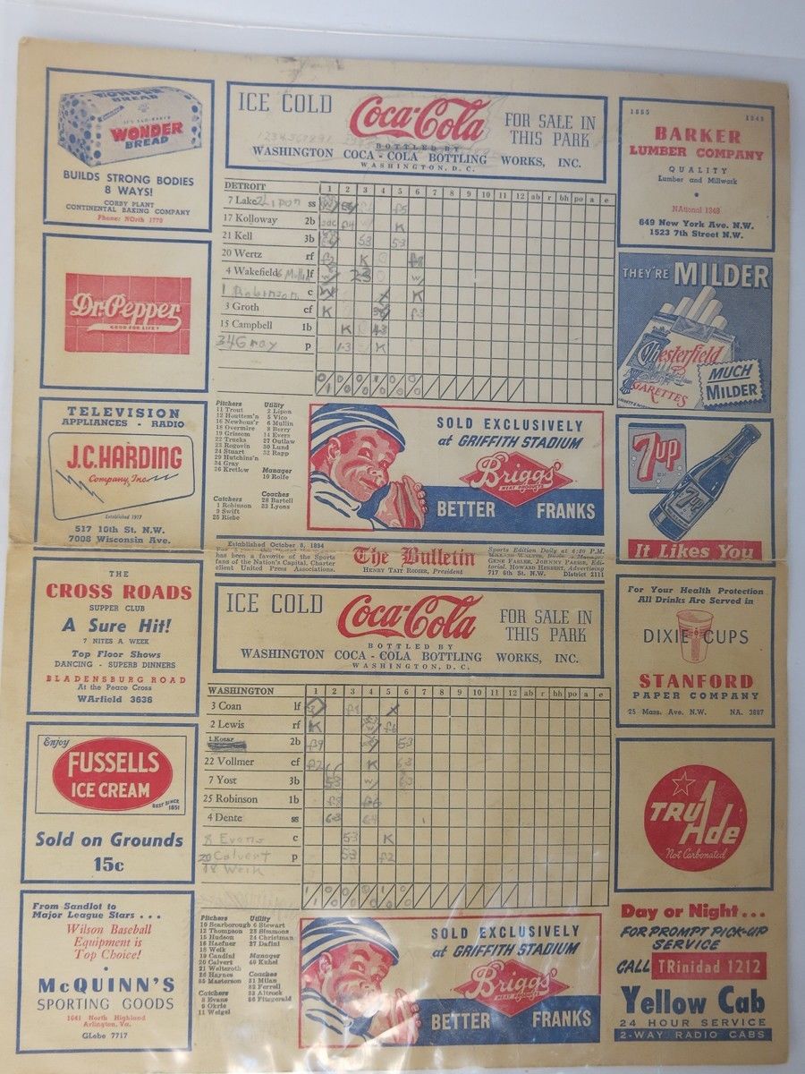 Title (ebay affiliate link): 1949 Washington Senators Scorecard at Griffith Stadium