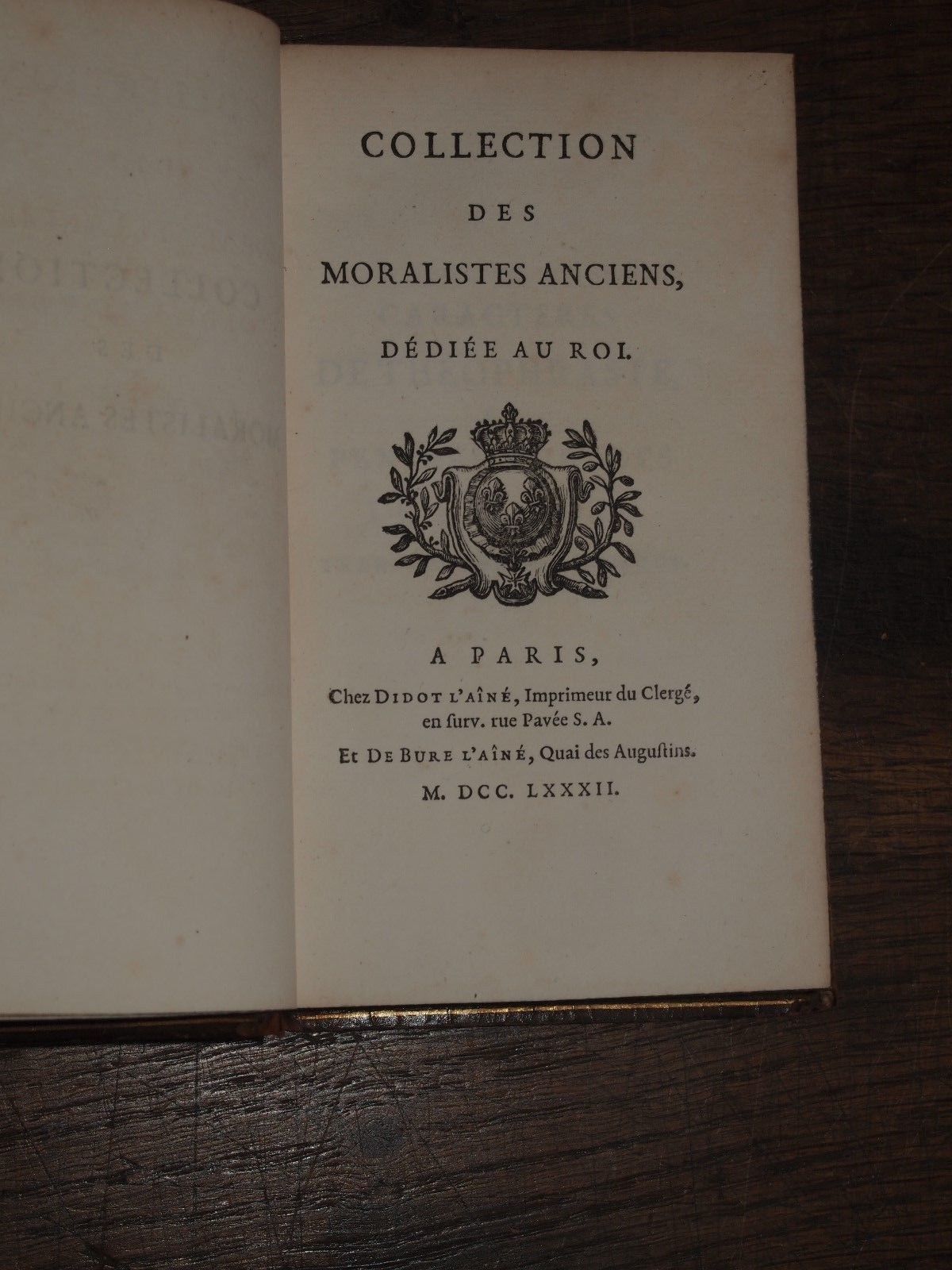 Title (ebay affiliate link): 1782 THEOPHRASTUS MENANDER ISOCRATES COLLECTION DES MORALISTES ANCIENS @