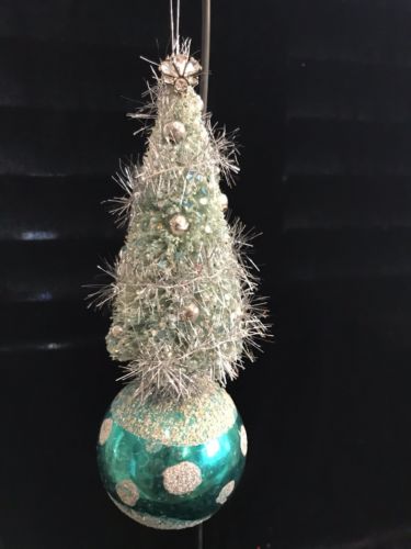 Title (ebay affiliate link): Vintage Mercury Glass Tinsel Garland Aqua Bottle Brush Tree Christmas Ornament