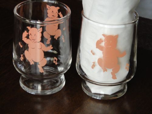 Title (ebay affiliate link): Set 2 Vintage FEDERAL GLASS CHILD GLASS TUMBLERS w PINK DANCING PIGS 3"