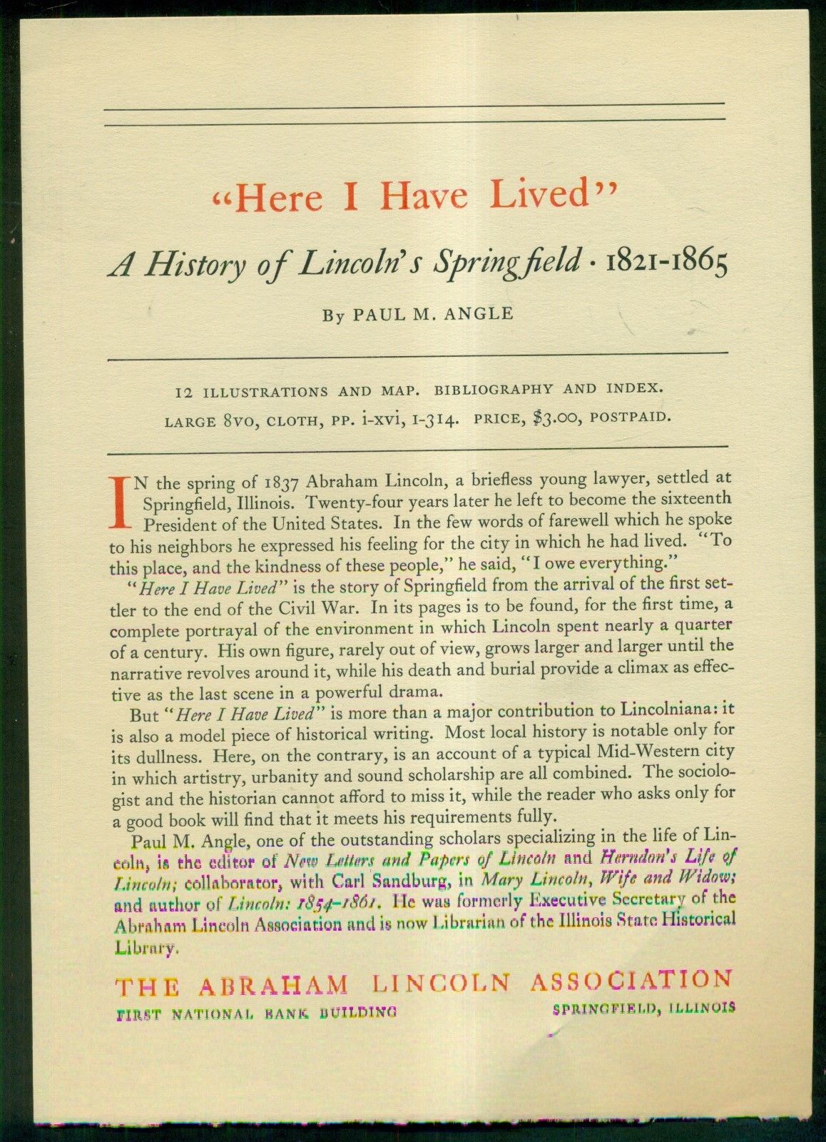Title (ebay affiliate link): 1950''s The Abraham Lincoln Assoc. "Here I Have Lived" by Paul Angle Promo Flyer