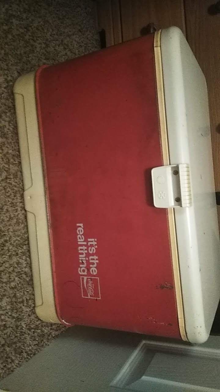 Title (ebay affiliate link): Coca Cola Collectible cooler red and white aluminum outer shell... Good conditio
