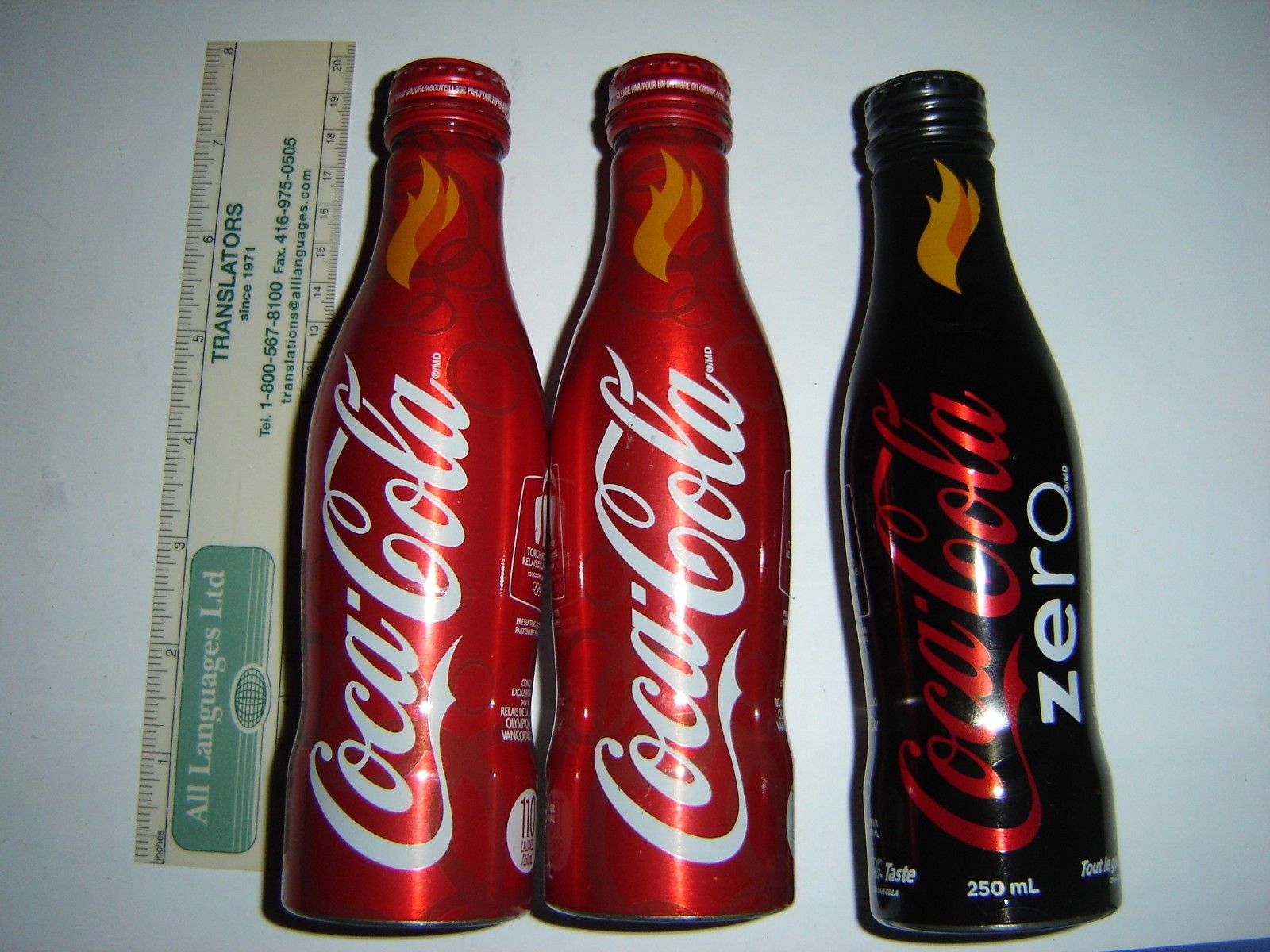 Title (ebay affiliate link): Vancouver 2010 Olympic Coca-Cola Zero full & 2 Coca Cola Classic Empty Bottles