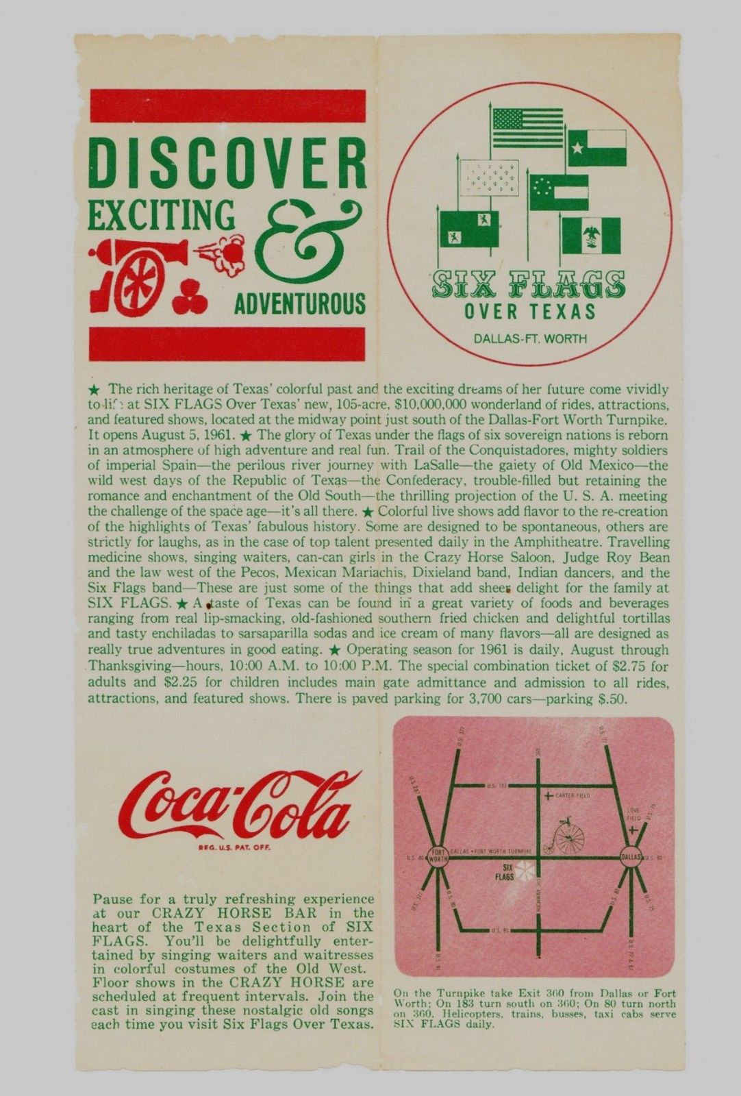 Title (ebay affiliate link): VERY RARE Vintage Coca-Cola 1961 SIX FLAGS TEXAS BROCHURE 57 yrs old