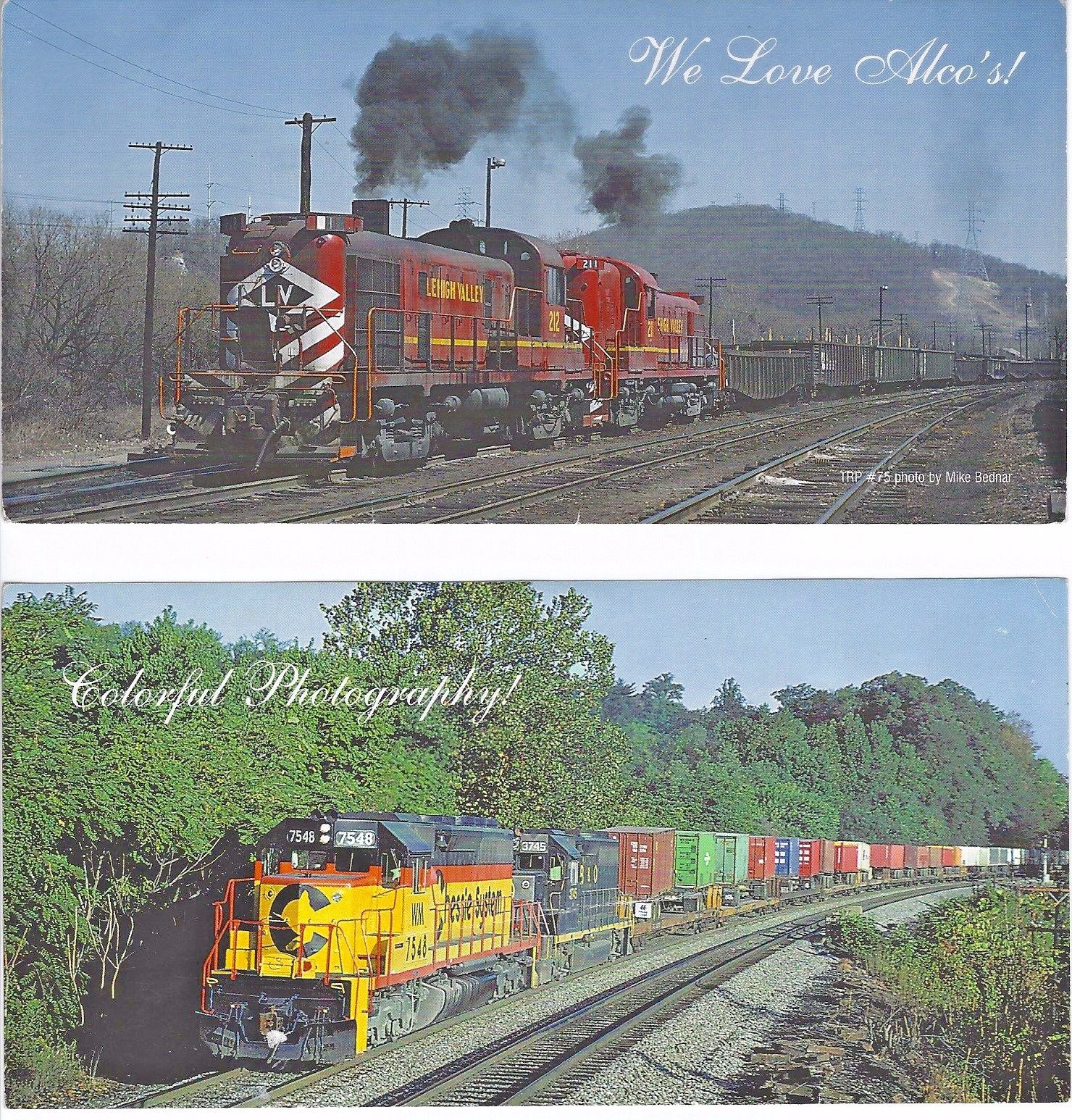 Title (ebay affiliate link): Two Postcards featuring Alco''s on the Leigh Valley & CSX/B&O units on a freight