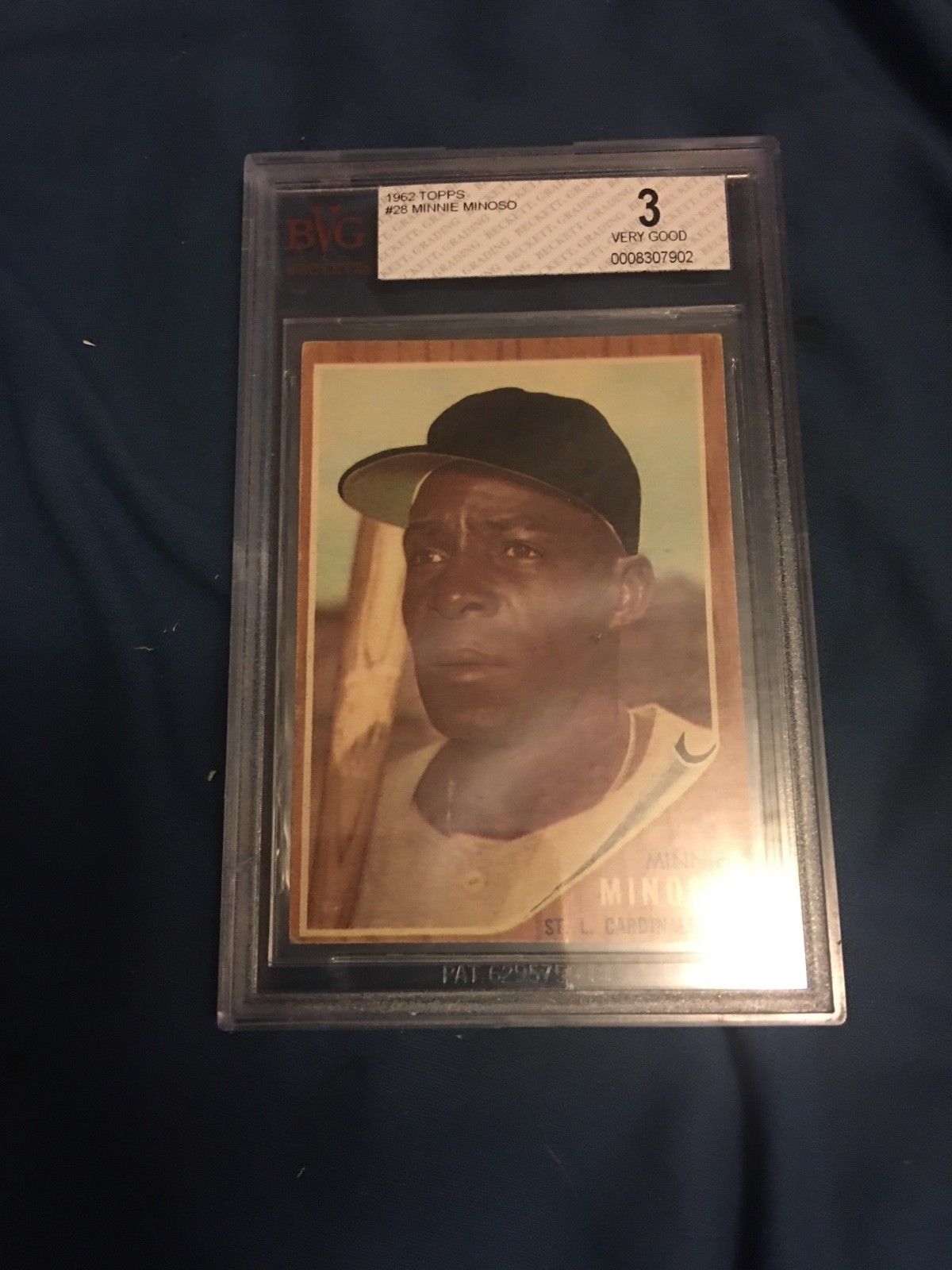 Title (ebay affiliate link): 1962 Topps Card of Minnie Minoso Graded 3 very good