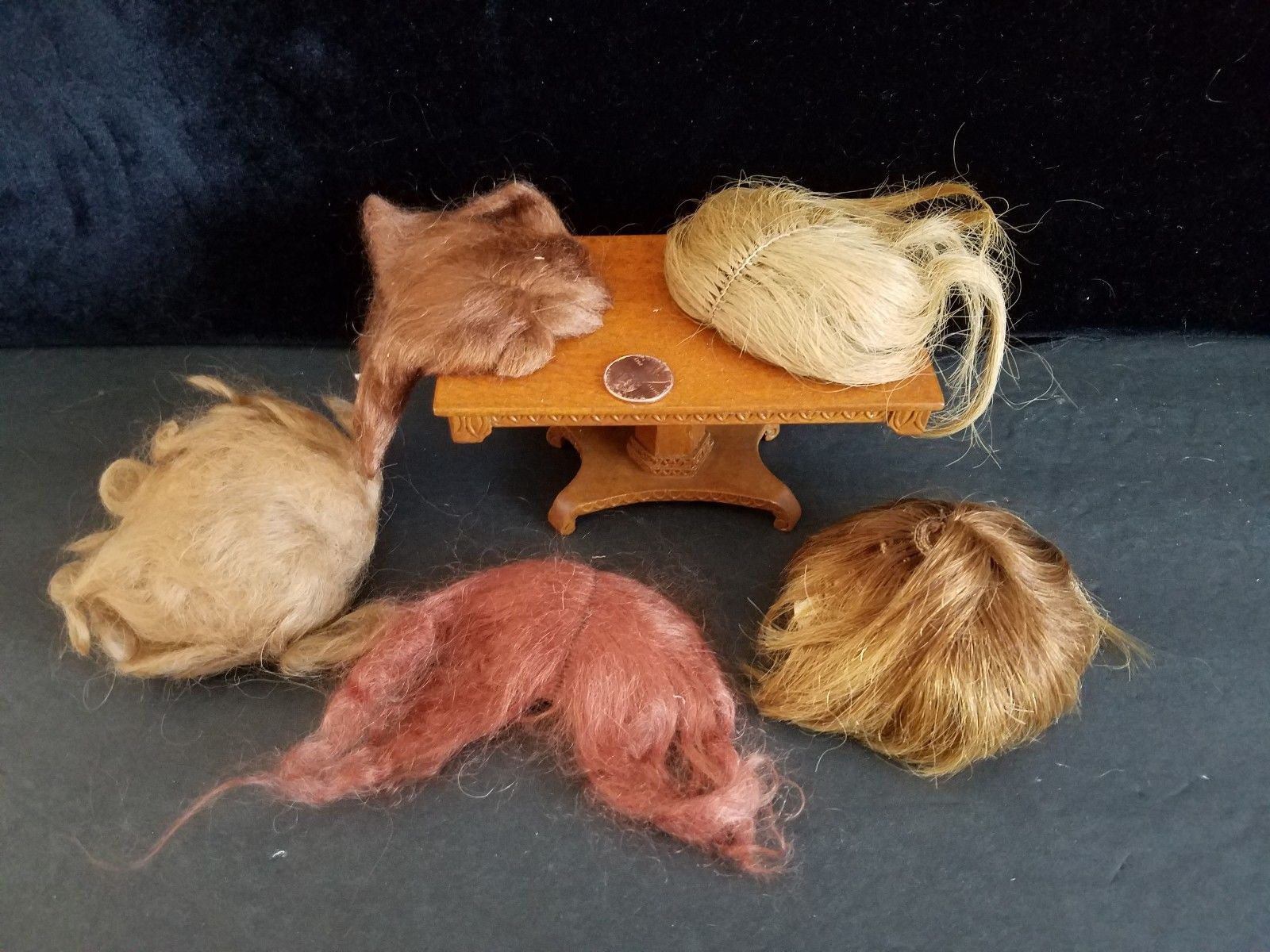 Title (ebay affiliate link): LOT OF 5 ANTIQUE HUMAN HAIR & MOHAIR DOLL WIG SMALL SZ , LOT #7