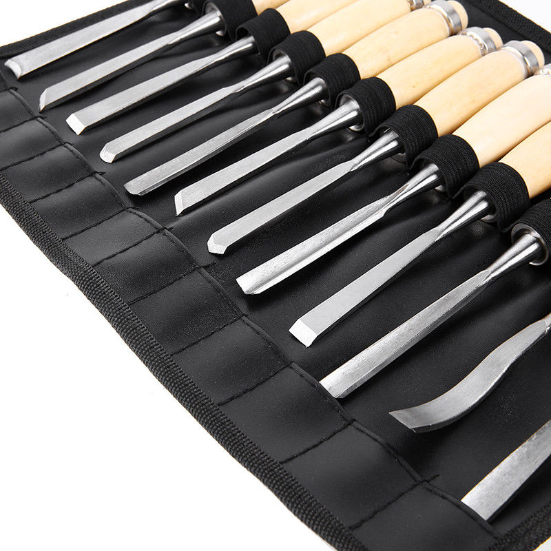 12PCS Wood Carving Hand Set Woodworking Lathe Gouges Tools W/ Carry Bag