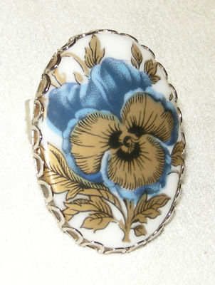 Elegant painted flower milk glass brooch pin