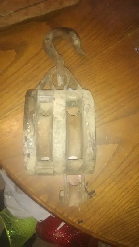 Title (ebay affiliate link): VINTAGE WOODEN DOUBLE PULLEY BLOCK AND TACKLE