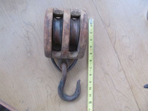 Title (ebay affiliate link): Antique Vintage Wood Pulley Double Block And Tackle Iron Barn Hook Nautical