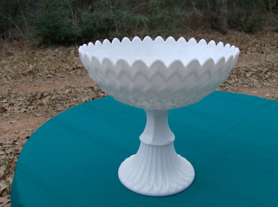 Title (ebay affiliate link): Large Vintage Milk Glass Pedestal Fruit Bowl Dish Vase