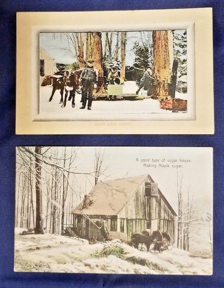 Title (ebay affiliate link): 2 Lot 1910-12 Vintage Postcards~Vermont Maple Sugar House, Boys Gathering Sap