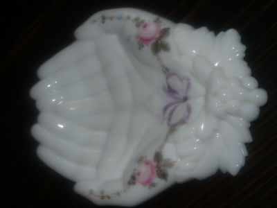 WESTMORELAND MILK GLASS PRAYING HANDS ROSES & RIBBON