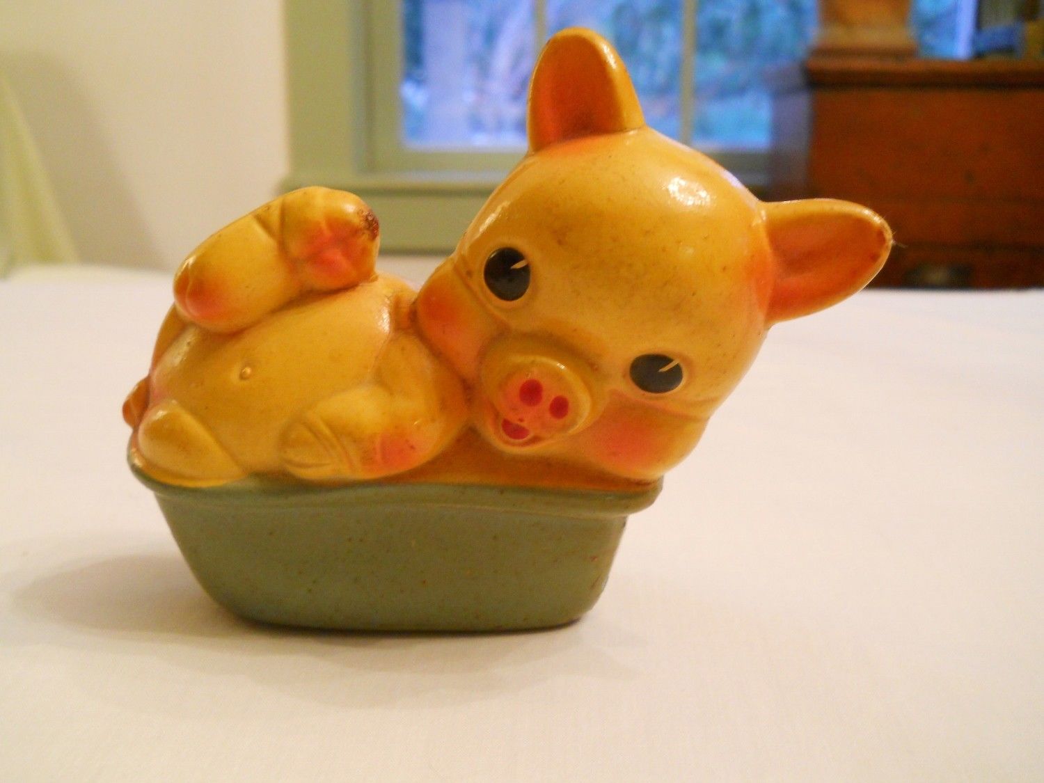 Vintage REMPEL Squeaker Toy - PIG IN TUB - Squeaks