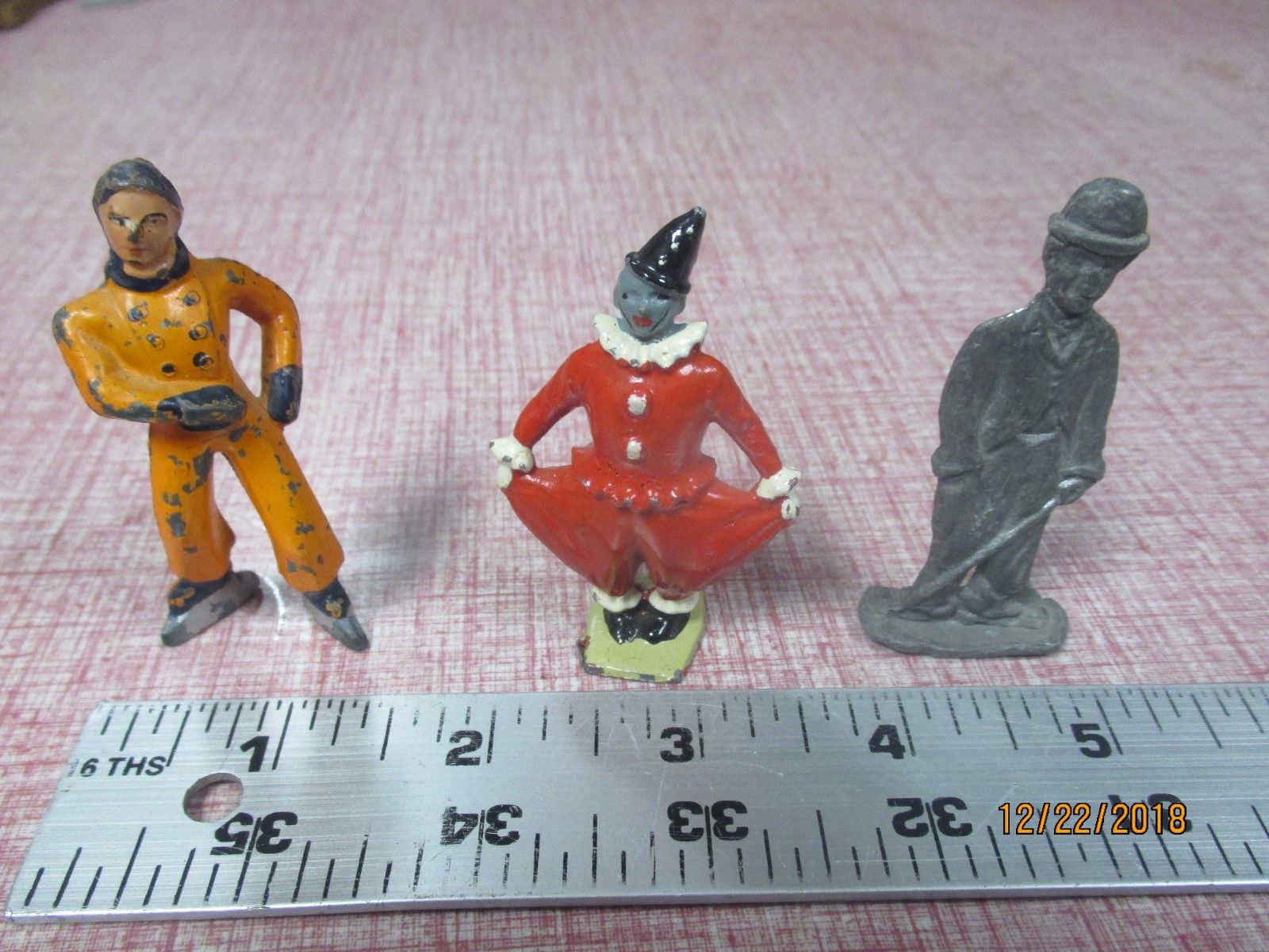 Title (ebay affiliate link): 3 Cast Metal Figures Skater Clown Charlie Chaplin Train Layout