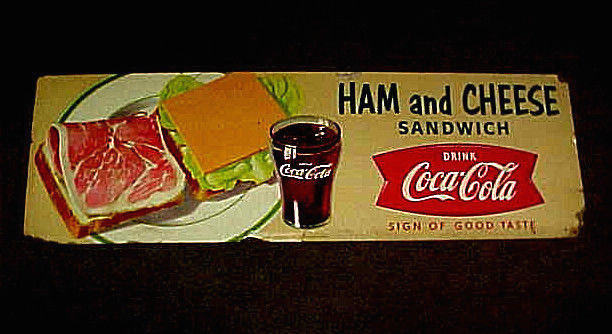 Title (ebay affiliate link): VTG. COCA COLA HAM & CHEESE 1958 MCM SANDWICH CHANNEL CARD, COLOR LITHO 7" X 22"