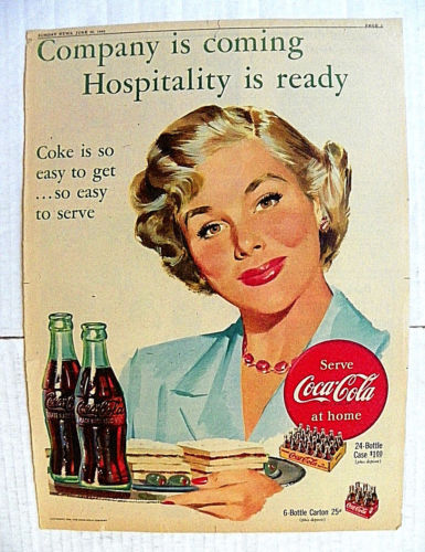 Title (ebay affiliate link): 1949,JUNE 26 PHIL. SUNDAY NEWS NEWSPAPER "COMPANY IS COMING" WOMAN SERVING COKES