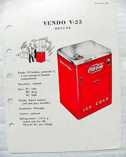 Title (ebay affiliate link): 1950''s "COCA-COLA" VENDO V-23 DELUXE MACHINE ~ SALESMAN FACT SHEET (FIRM STOCK)