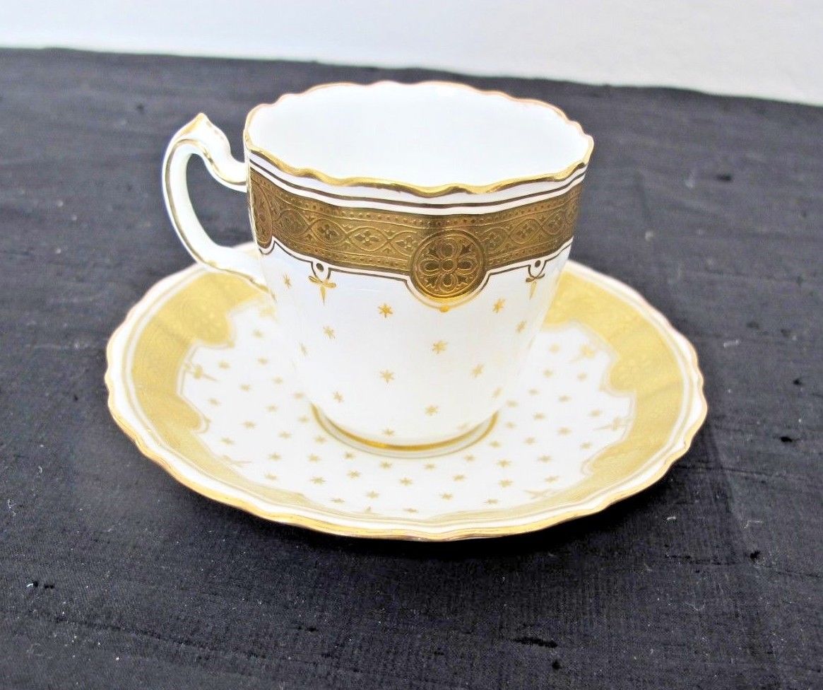 Vintage Mintons Demitasse Cup and Saucer Set White and Gold C1900