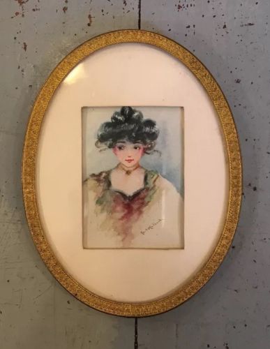 Title (ebay affiliate link): Vtg 24k Gold Plate On Brass Oval Picture Frame Miniature watercolor portrait