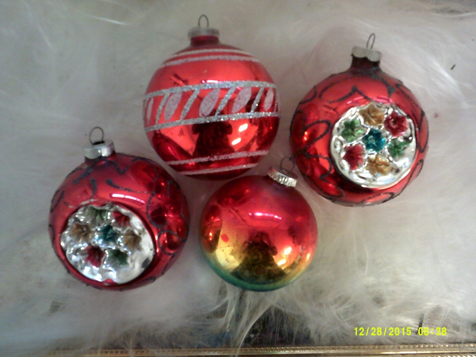 Vintage West German Indent Reflector WWII Glass Christmas Ornaments