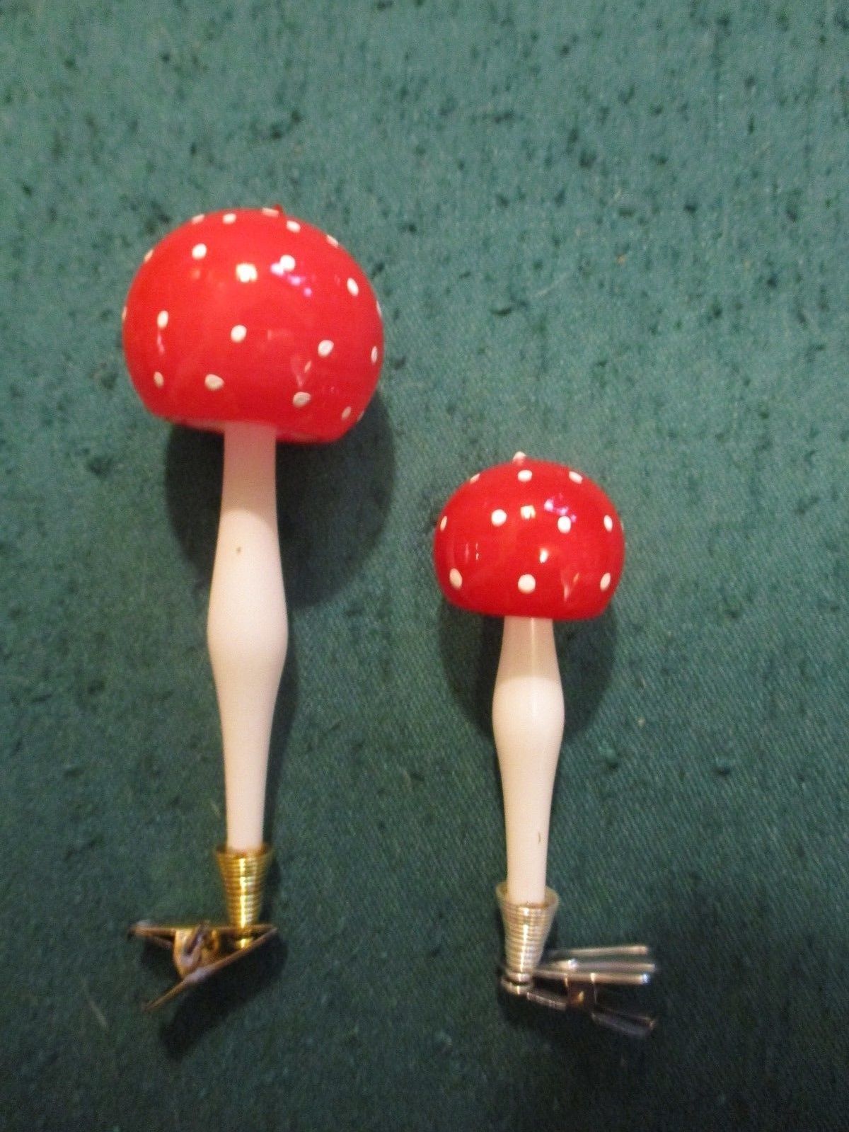 Title (ebay affiliate link): Pair Vintage Blown Glass Christmas Ornament, Clip-On Mushrooms with Red Tops