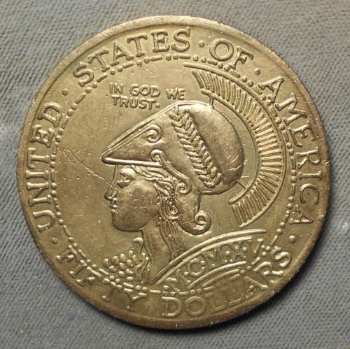 Title (ebay affiliate link): Coca-Cola 5c Annual Convention Panama-Pacific $50 Round Fantasy