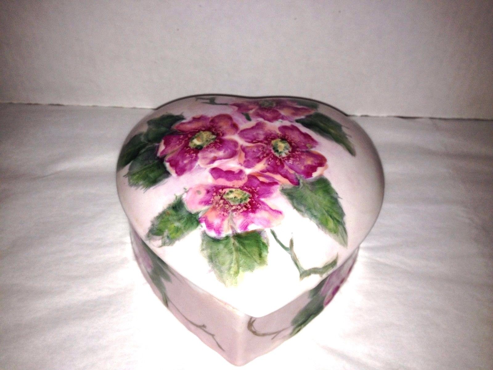 Title (ebay affiliate link): Porcelain Antique hand painted Trinket Jewelry Vanity Box Hearts and flowers 6"