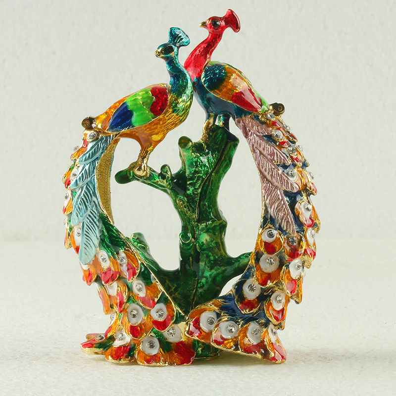 Title (ebay affiliate link): Chinese cloisonne Inlaid Rhinestone Peacock Statue Jewelry Box R0044.b