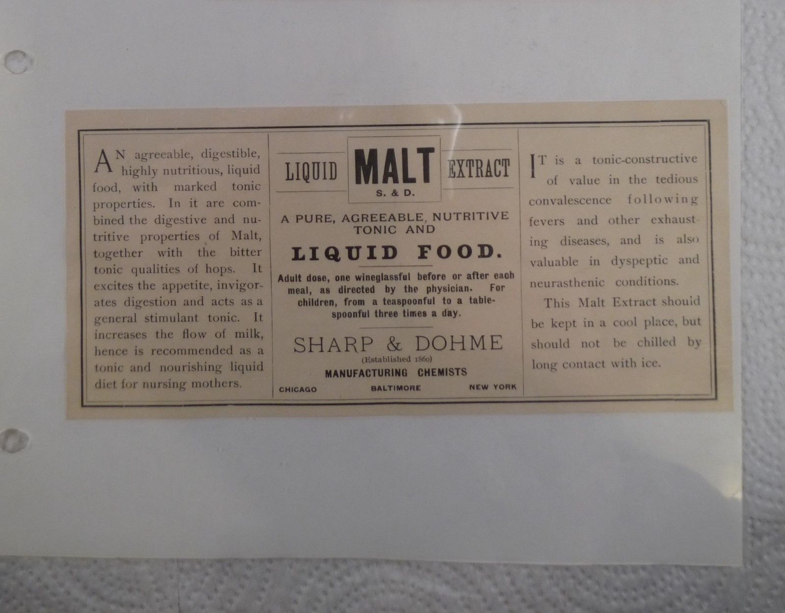 Title (ebay affiliate link): LIQUID MALT EXTRACT SHARP & DOHME BOTTLE LABEL 1890-1910s