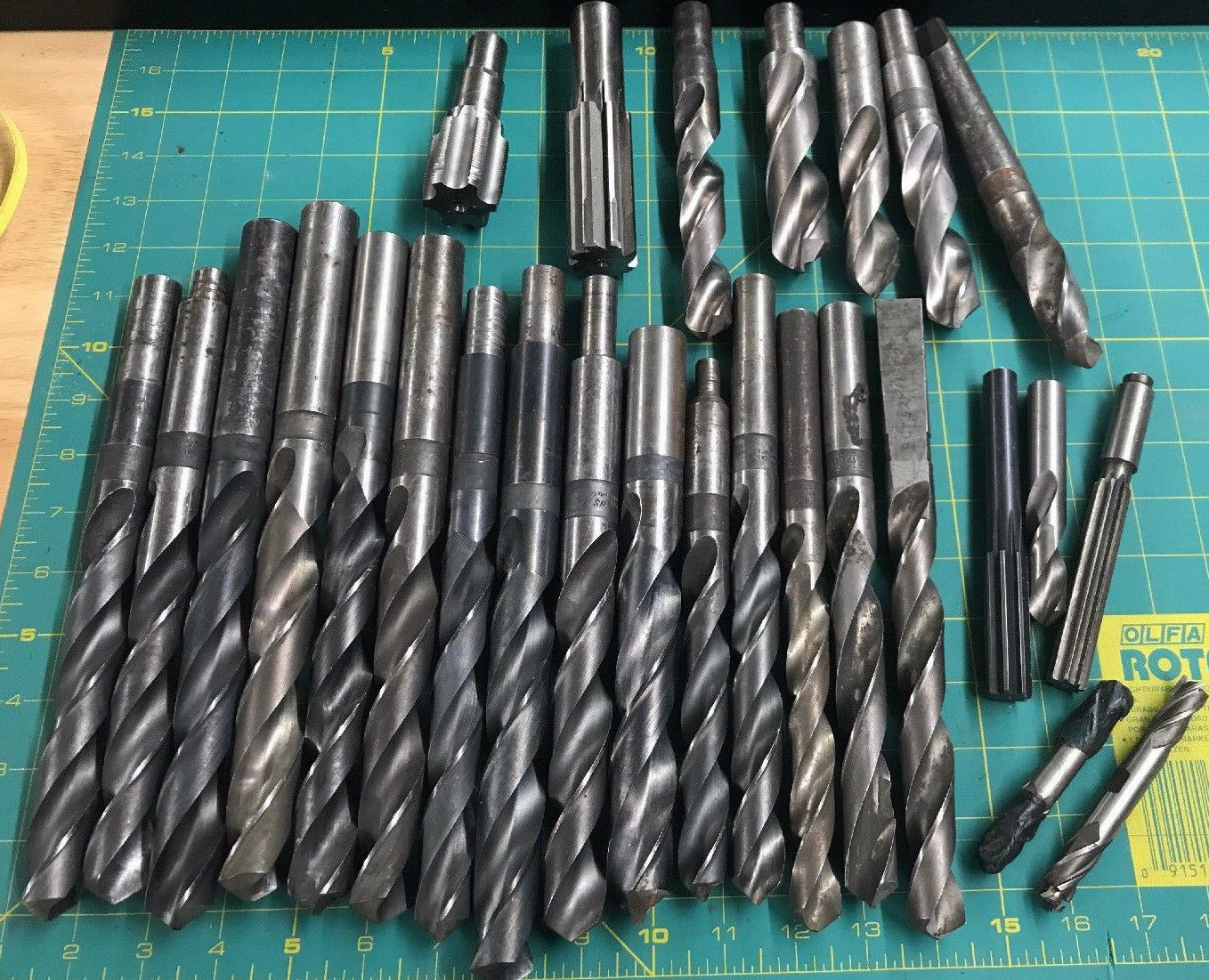 Title (ebay affiliate link): 25+ USED DRILLS REAMERS END MILLS TAPS TAPERED SHANK STRAIGHT CARBIDE TIPPED HSS