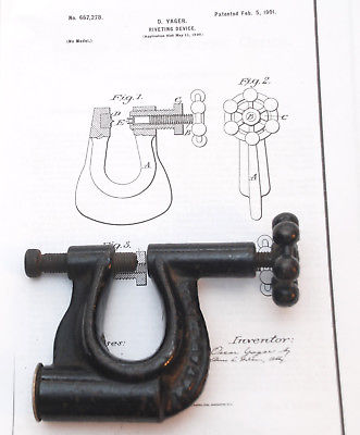 Title (ebay affiliate link): Vintage Antique YAGER 1901 Patented RIVET TOOL