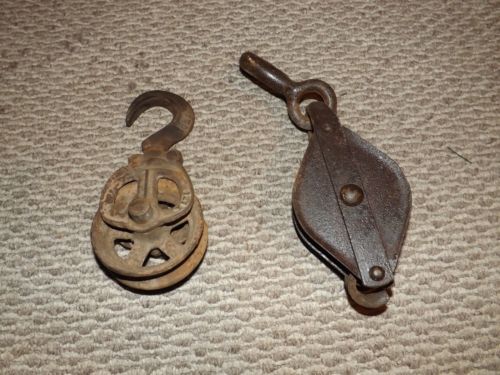 Title (ebay affiliate link): Vintage Steel Double Wheel Pulley and Swivel Hook, Block and Tackle, and Single