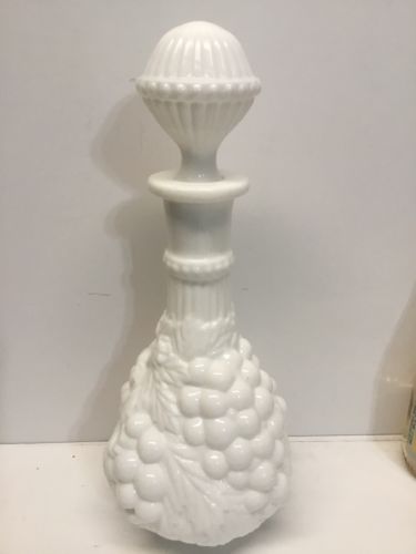 Title (ebay affiliate link): Vintage Milk Glass Decanter 15 Inch with Grape Pattern Imperial