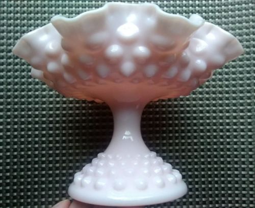 FENTON ROSE PASTEL HOBNAIL PINK MILK GLASS COMPOTE