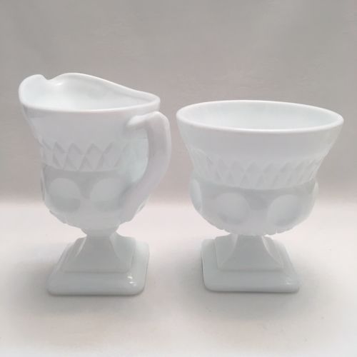 Title (ebay affiliate link): Vintage White Milk Glass Sugar and Creamer with a Unique Design EVC