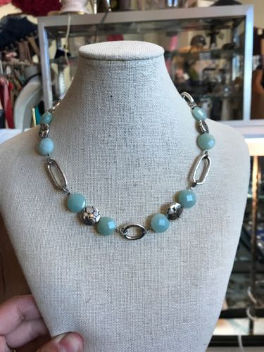 Title (ebay affiliate link): Brighton Costume Silver Tone Faux Faceted Jade Milk Glass Necklace