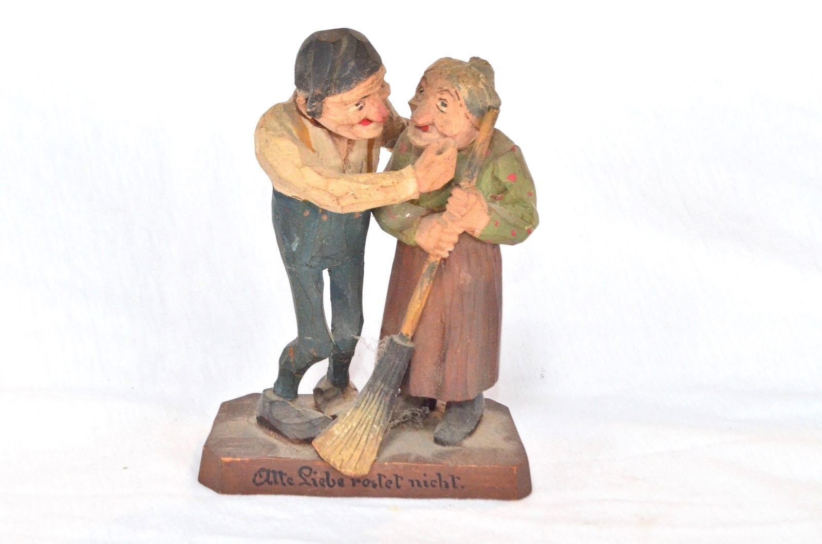 FOLK ART CARVED AN OLD FLAME NEVER DIES COUPLE