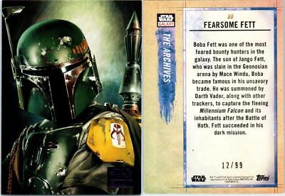 Title (ebay affiliate link): 2018 STAR WARS GALAXY PURPLE PARALLEL CARD 80 FEARSOME FETT 12/99